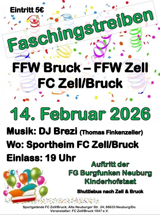 Von Sebastian Skowronski / 21. Januar 2026 Faschingstreiben 2026 FFW Bruck – FFW Zell – FC Zell/Bruck
